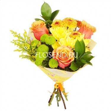 Букет из желтых хризантем и роз